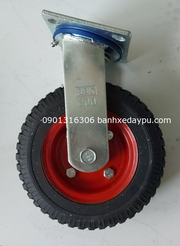 Bánh xe chịu lực 550kg SP TRUNG ĐẠT, vật liệu bánh xe pu cốt gang có vòng bi 6202Z càng mạ kẽm có khóa loại tốt chống trượt kích thước bánh xe đẩy 200mm