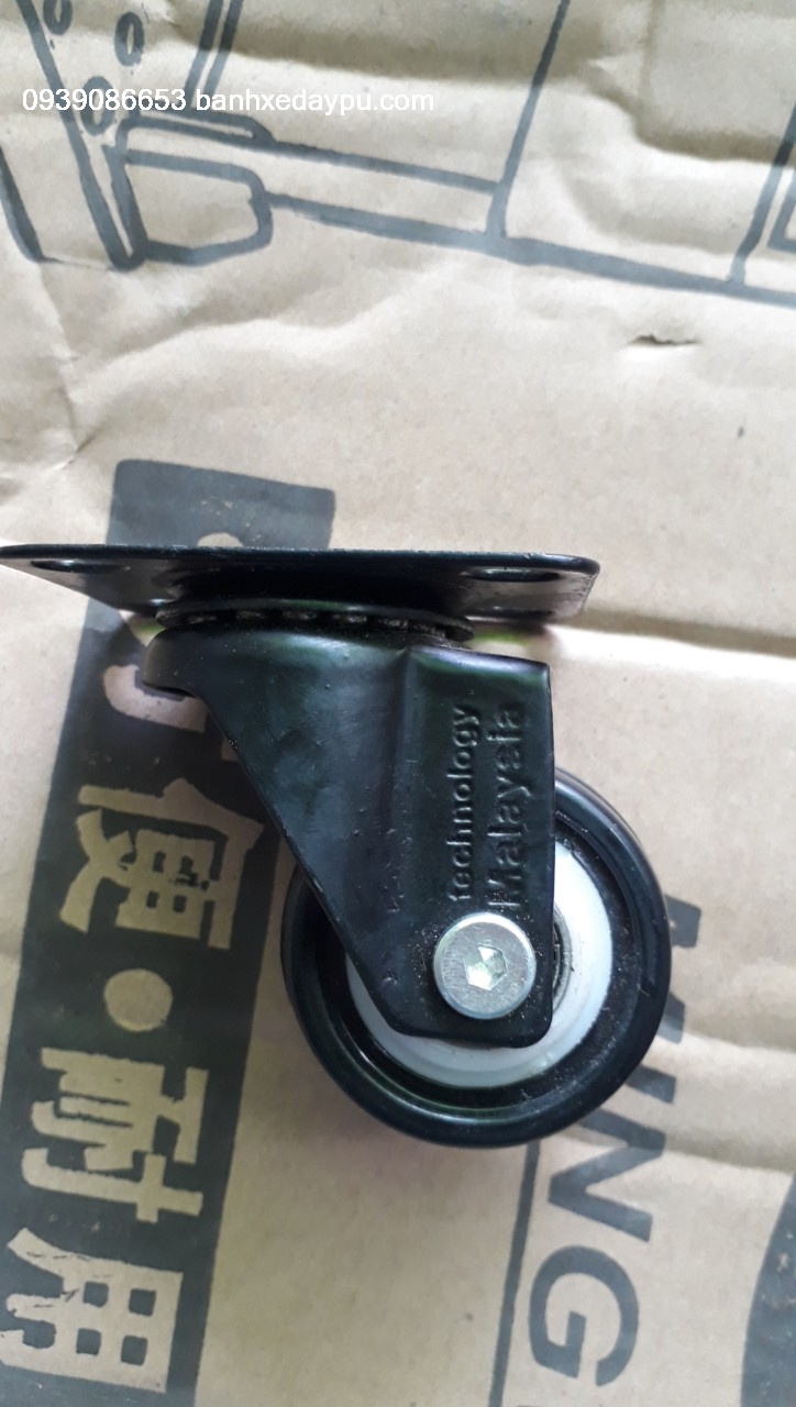 Bánh xe đẩy pu 75x32 càng malaisia xoay không khóa TPU Đen
