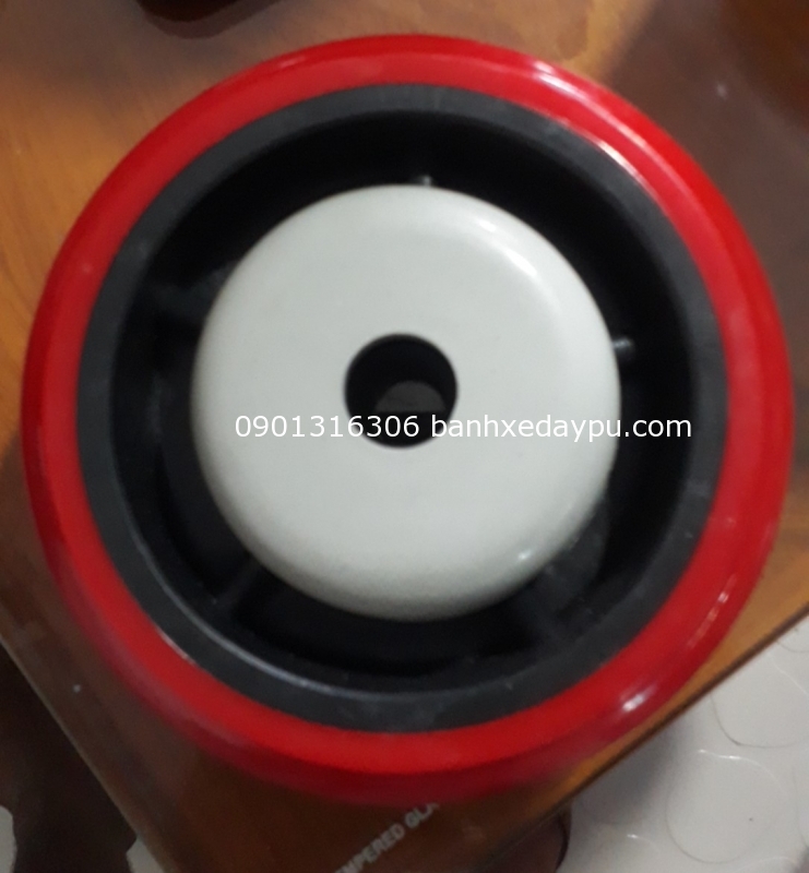 Bánh xe chất liệu nhựa Pu (Poly-Urethance) lõi gang đúc. Pu dẻo có đặc tính kết dính tốt, không bong tróc. Chống va đập và độ đàn hồi cao, chịu tải trọng tốt