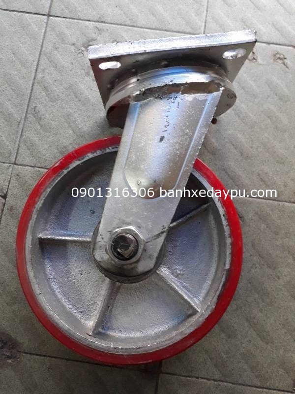 Vật liệu PU chống xé rách, chống mài mòn tăng độ bền bánh xe, tốt gấp nhiều lần so với bánh cao su; Khả năng chịu tải trọng lớn 800kg; Độ dày càng thép tới 10mm; Sử dụng bạc đạn côn 6203 tăng độ xoay cho đế xoay; Ứng dụng: xe đẩy, kho hàng, Inox, nhà máy công nghiệp, xây dựng, cảng biển